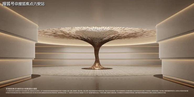 宾客甫至,三层挑空的前厅豁然展开。中央,一株金属锻造的黄金树雕塑破空生长,迸发盎然生机,宛如与社区共生共荣的巨木,枝影扶疏,蔚然成观。四根巨型螺纹柱运用现代参数化技术,精妙解构自然树木的遒劲形态,由8吨不锈钢锻造而成,既展现了现代科技的魅力,又传承了自然的韵味。