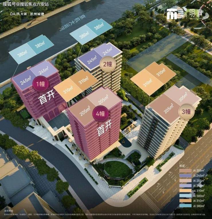 项目规划4幢12-17层小高层,主打205㎡(层高3.15米)、245㎡(层高3.3米)、300-380㎡顶跃(首层3.6米)三大奢阔户型。这是杭州市中心首个全抬板的豪宅,项目通过-1层、M层(地面层)、G层(抬升地面层)做了三级立体抬升,把首层住户最高抬升至约12米的高度。