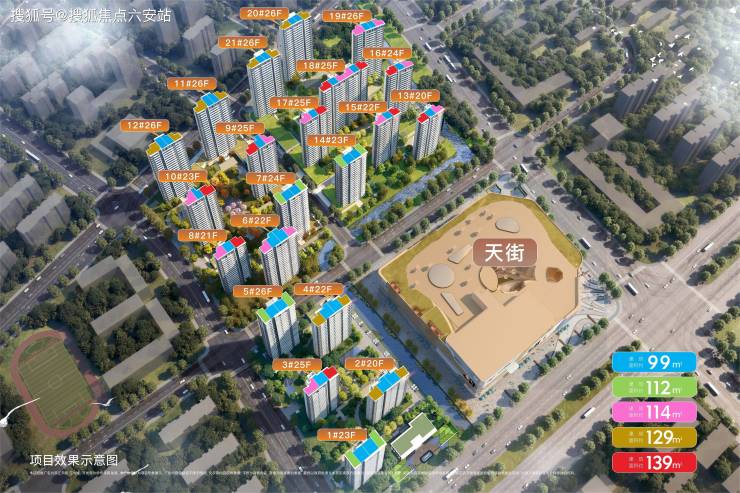 住宅建筑面积为99-139㎡,其中三开间朝南+约6.6米双连阳台的99㎡户型,三房+双明卫空间布局,约9.9米的南向整体面宽,把小户型的面宽尺度做到了极致,采光更佳。