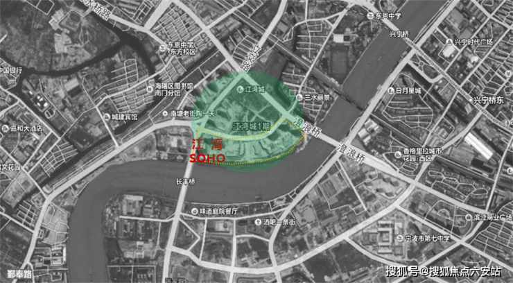江湾城坐落于海曙区鄞奉片区,是海曙的核心区域,项目西邻南塘老街,南邻奉化江,鄞奉路与尹江岸路交织在侧,不仅交通方便,而且配套成熟。江湾SOHO就是在这样一个地段上应运而生的。