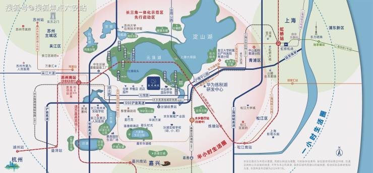 蓝城春风湖滨具体在哪?它稳稳落在长三角一体化示范区的先行启动区——苏州汾湖。北面是风景如画的元荡湖,南边就是未来长三角共塑的“水乡客厅”样板区。简单说,这里就是未来长三角发展的“封面”区域,由绿城中国、蓝城集团和本土实力国企汾湖投资共同打造,是一个融合了科创与康养理念的湖畔小镇。