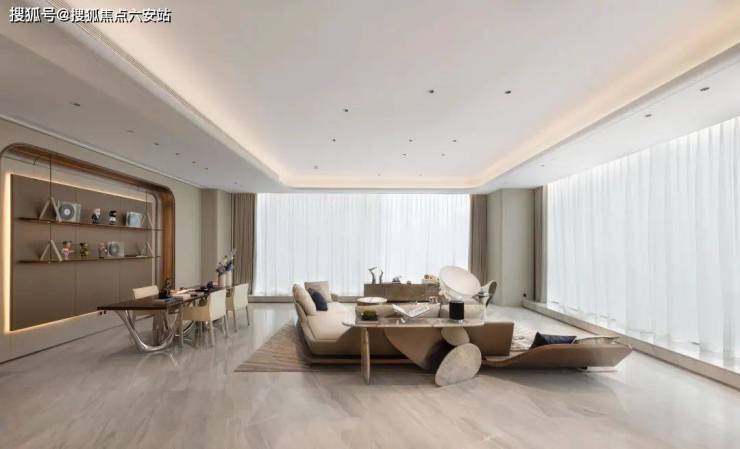 室内设计上,采用LDK一体化设计,带来极具阔正的空间尺度,并以大面米灰、暖灰为主基调,营造出高级优雅的氛围感,同时通过吊灯、艺术玻璃、酒柜等软装艺术作点缀,将艺术与生活融合,简奢中透出时尚前卫,营造出私密、温暖、现代化、国际化及独特的鼎级舒居体验。