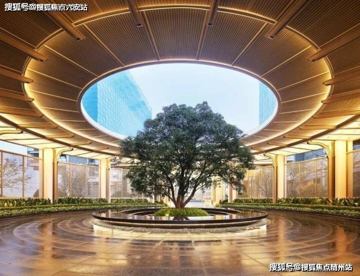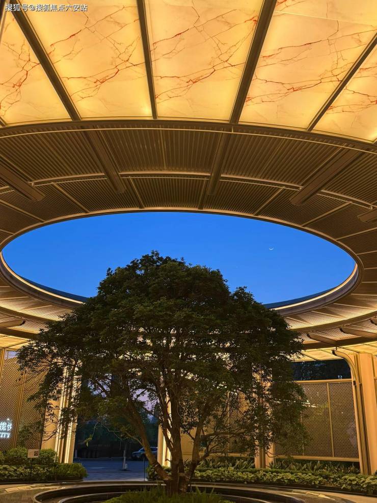 步入门庭,映入眼帘的是由11根高5米多的弧形立柱构成的壮阔空间。这些立柱巧妙环绕,撑起了一个宏伟的藻井,其吊顶采用了精致的透光云石,彰显非凡的气派与匠心独运的设计。中心一棵古桂挺拔繁茂,恭候业主荣耀归府。
