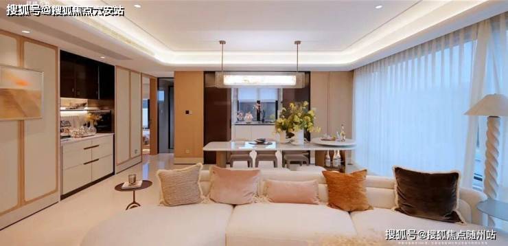 独立电梯厅入户;入户玄关;餐厅预留餐边柜;餐客面积约44㎡(锦上万象府186方餐客厅面积42方,元起观潮225方餐客厅面积才48方)