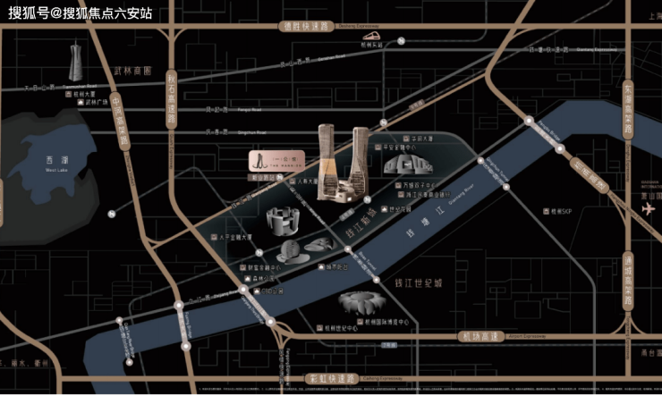 以杭州市民中心为核心的政务圈,杭州大剧院、杭州国际会议中心、城市阳台等城市地标级配套环伺左右。
