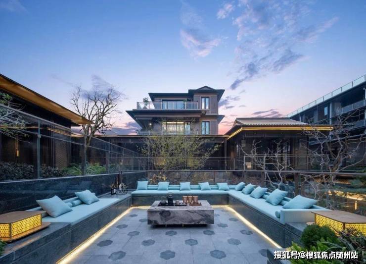 立体院居,功能臻配:叠墅与合院的奢享尺度建筑整体采用蓝眼睛石材、铝板、玻璃幕墙等材质,搭配香槟金和古典灰,为建筑增加高贵、庄重的气质。