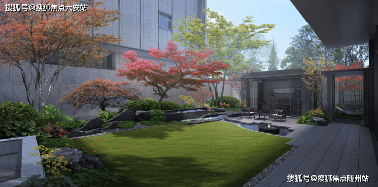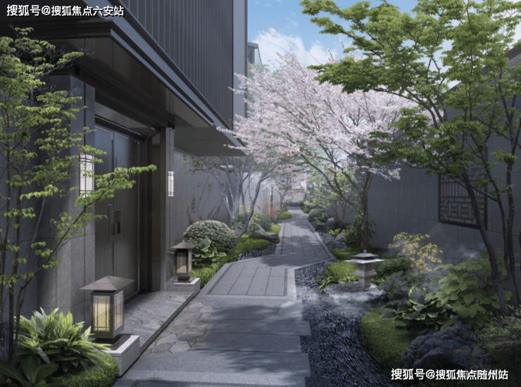 地下车库直通庭院,业主可乘电梯直达入户层,全程无暴露路径,保障了圈层的纯粹性。入口处右侧是迎宾的组合造景,选用泰山石组景以及黑松、砾石等中式元素,与小区整体江南水乡风格相得益彰。步入院门,首入眼帘的是一个灵动的水系景观组团,通过汀步穿过休息区,南向是超大面积的休闲草坪,为家庭成员提供极佳的休憩活动场所。这种隐奢级的归家动线,让每次回家都成为一场心灵洗礼。