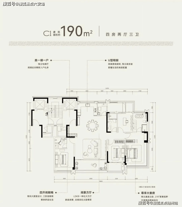 满足5房空间后,可能客户会觉得客厅不够气派,我看了下户型格局。