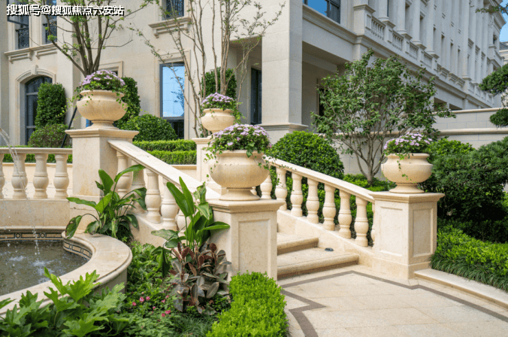 外立面全石材干挂,复刻法式宫廷美学,对称几何园林+五重景观轴
