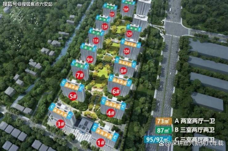 户型:73㎡两居、87/97㎡三居,总户数1088户。