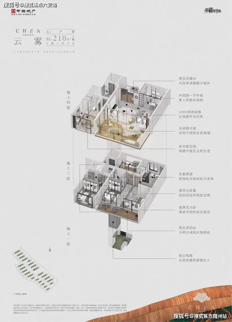 上叠户型(如210㎡“云雾”)主打空中墅感: