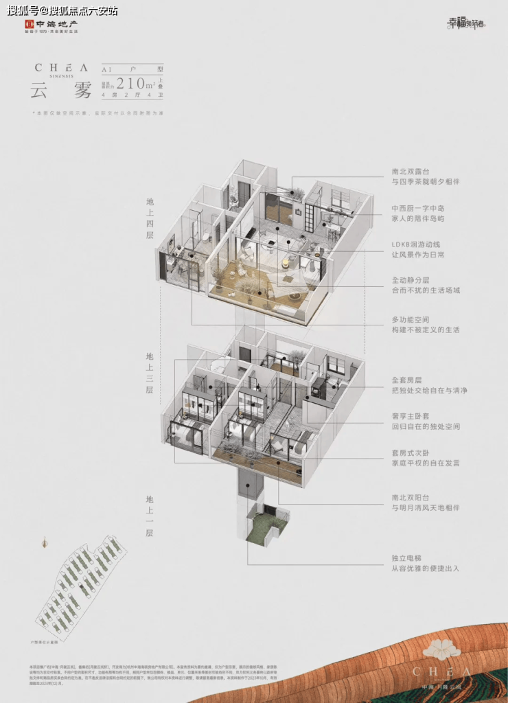 中海·月陇云岚还以“四方山色,云水九溪”为主题,结合龙坞台地特有的“山水感、起伏感、曲折感、驻留感”来营造园林景观,整体形成“一心一环双轴七廊道”的景观布局,行于其中,寄情于自然山水,创造出乘物游心的游园体验。而在户型空间命名上,“旗枪”、“云雾”、“玉露”、“奇兰”等一系列样板名称,都流露着大师美学与中国茶文化的自然交融。由此,西湖、茶山和中海融汇成一个完整的作品,照亮当代心灵对西湖的本真向往。