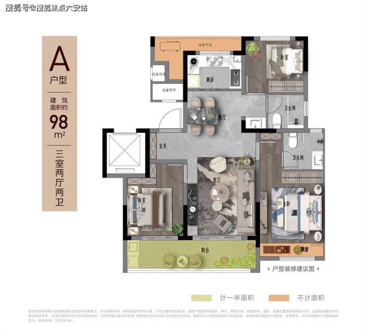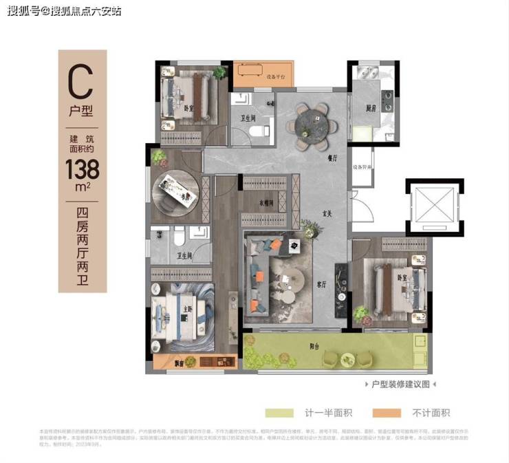 【户型面积】建面约98㎡三房、建面约109/124/138/143㎡四房