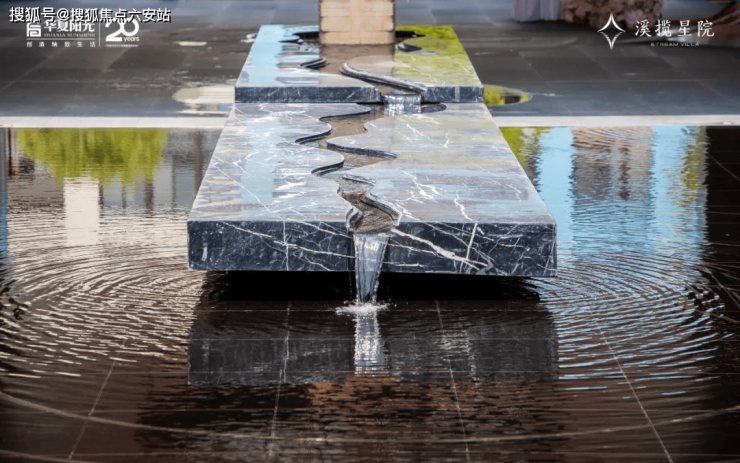 从气势恢宏的北入口步入溪揽星院,自日本漂洋过海而来的两株罗汉松巍然映入眼帘,以挺拔的姿态欢迎归家的主人。移步向内,汩汩叠水诗意迎宾,渚上星河交相辉映,泠泠飞瀑激荡林影。