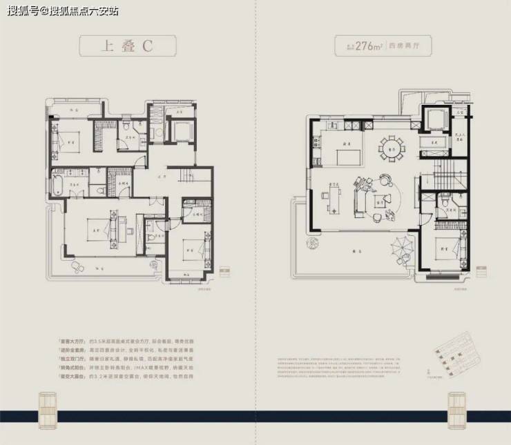 上叠:276-280㎡户型,星空露台+星空穹顶,主卧“小家化”设计,步入式衣帽间+双台盆卫浴。