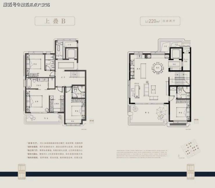 以220㎡上叠户型为例: