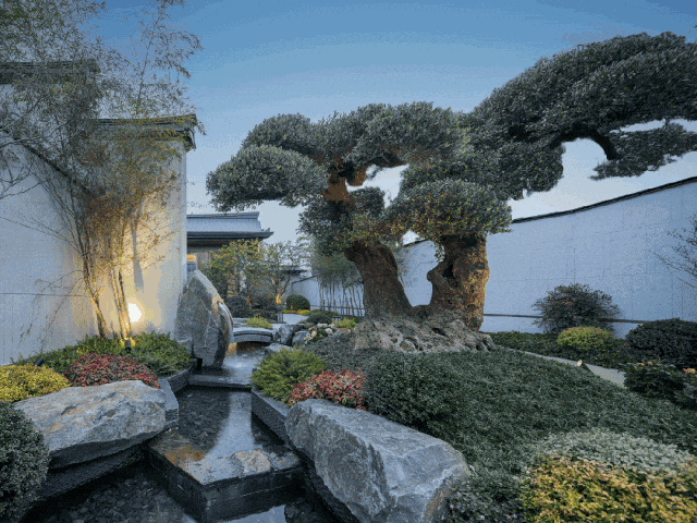 携手大师,臻选百年珍贵古树,300余年树龄日本茶梅、百年桂花王、百年冬青、百年杜鹃等珍木,祈福家宅圆满。