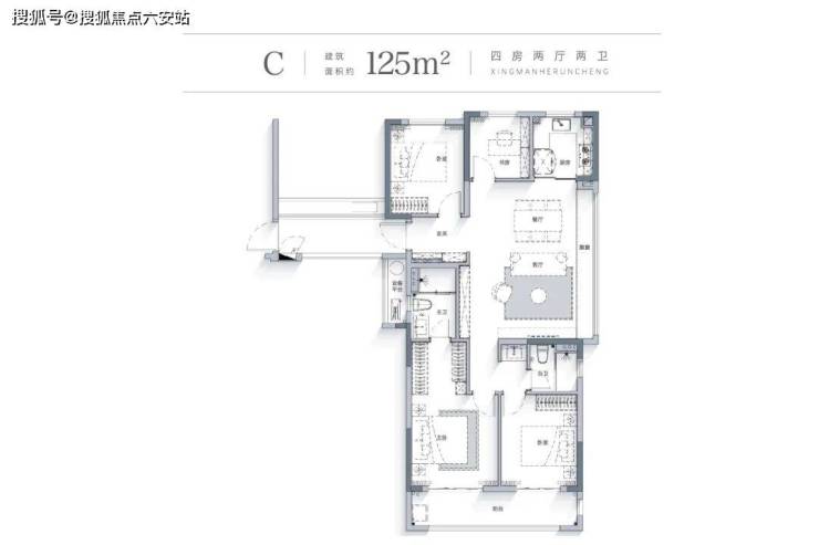 建面约125方户型,做到了“四房横厅”的规划,不仅满足了家庭的居住需求,更提升了居住的品质。大横厅的设计,轻松容纳多人聚会。主卧尺度感阔绰,居住体验更具优势。