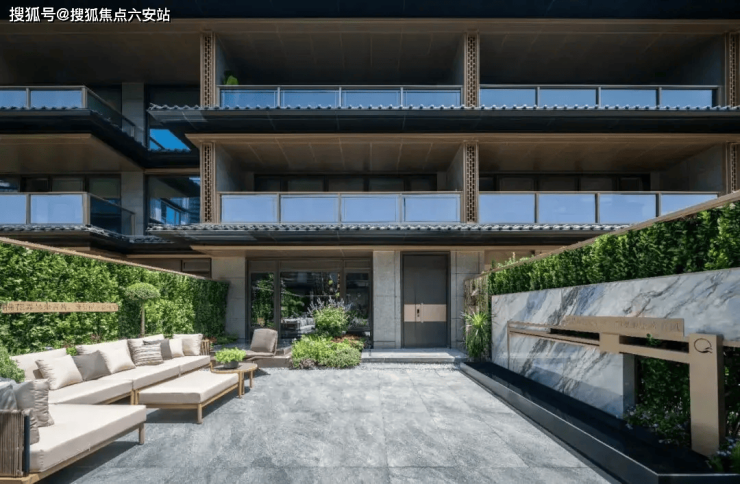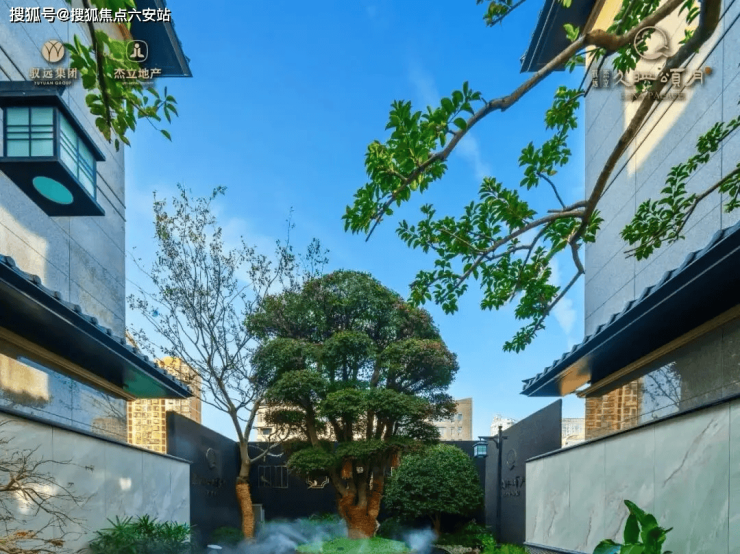 (一)久映颂月府采用备受欢迎的新中式建筑风格,将宋式坡屋顶、挑檐等建筑风韵,通过现代技艺手法完美呈现。在建筑设计中,深入挖掘宋式建筑轻盈、精致、通透的特点,对 “将军门、飞檐、重檐、绞角造、板引檐、普拍枋与阑额、方格挂䈋” 等传统建筑元素进行原创转译设计。项目在建筑外立面上不惜成本,采用伊朗进口的 “蓝眼睛” 石材,这种石材纹理独特、质感上乘,在阳光下散发着迷人的光泽。搭配大面积落地玻璃与香槟色铝板,不仅提升了建筑的整体质感,还增强了建筑的采光与通透感。值得一提的是,北向立面同样采用高品质材料,香槟铝板的包裹让建筑无论从哪个角度看都尽显奢华与精致。