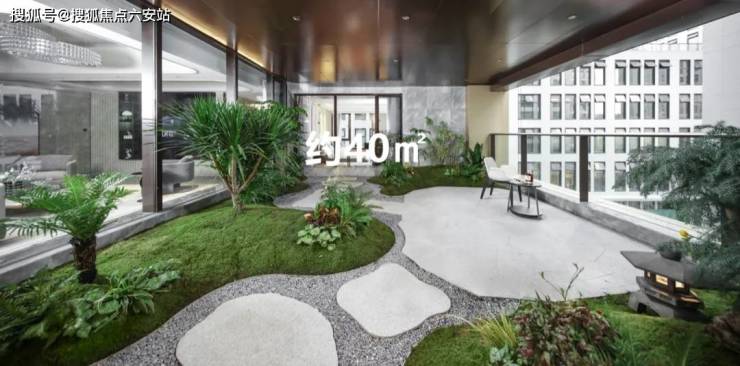 约40㎡是什么概念呢?和杭州城里大多数叠墅下叠的花园相仿。可以说,滨悦城的空中花园是极罕见的“园林级”空中灰空间。
