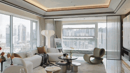 携手国际顶尖团队Gad、李建国等,以“悬浮水晶”为灵感,采用Low-E中空玻璃与阳极氧化铝板,打造建面约800㎡环幕大平层。外立面如流动的丝绸,与运河波光粼粼的倒影交织,形成“建筑即景观”的视觉奇观。