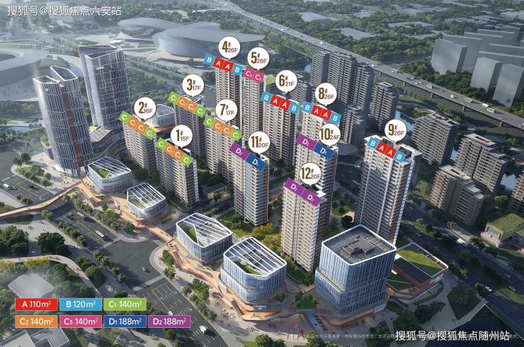 户型面积:98㎡三房、118㎡四房、139㎡四房,得房率78-80%