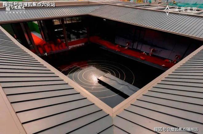 溪揽星院带给我们第二眼视觉冲击,则来自于阔达约32米的主入口门楼,气派非凡。如果你看过华夏四季与华夏之心,一定会对「四水归堂」格局的会客厅印象深刻,仪式感十足的礼序归家场景,在溪揽星院上也再次呈现。