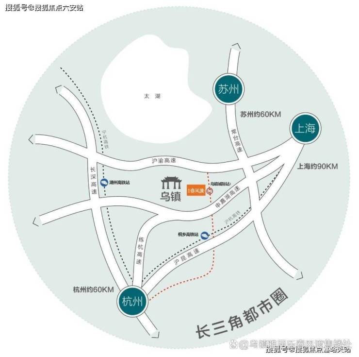 项目周边交通十分便捷。高铁: 桐乡高铁站,城市公共交通:步行5分钟可至黄家桥站, K281路、7615路公交车经过,(K281路:乌镇汽车站-桐乡汽车站-桐乡高铁站)(7615路:乌镇-苏州吴江区)同时,乌镇板块内还规划了 城际轨道湖嘉杭绍线,将于项目旁设有站点,未来将形成沪苏杭半小时通勤圈。