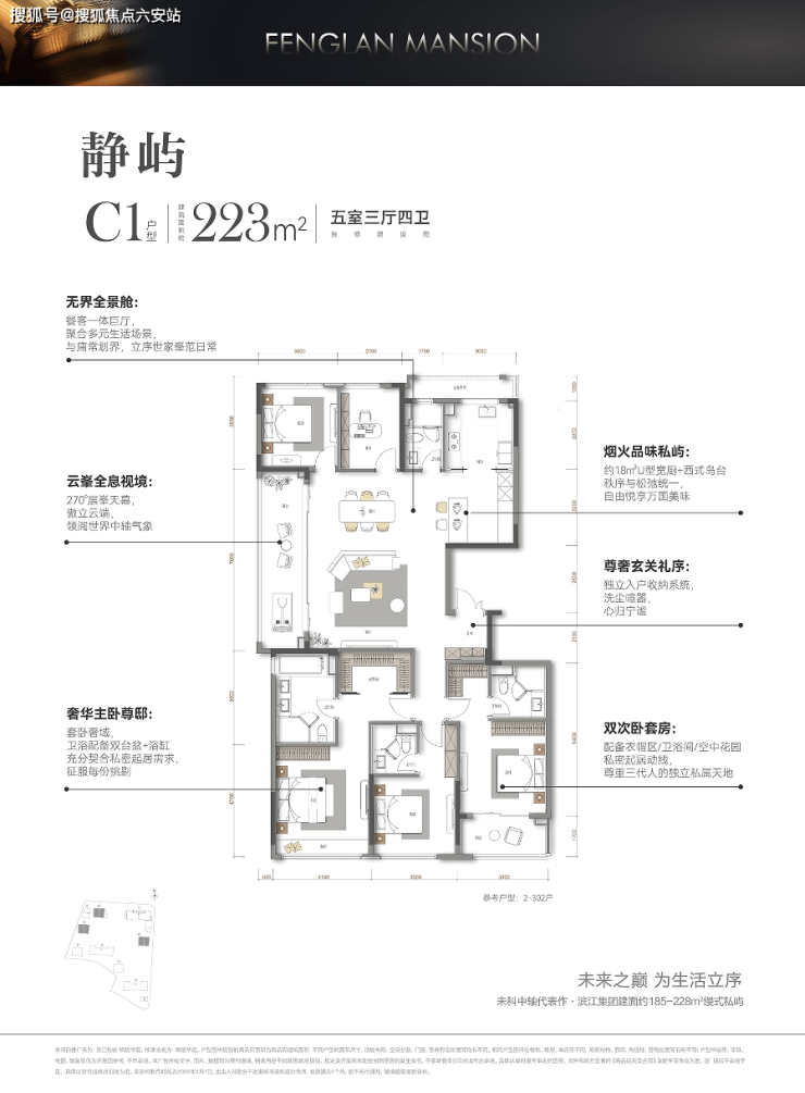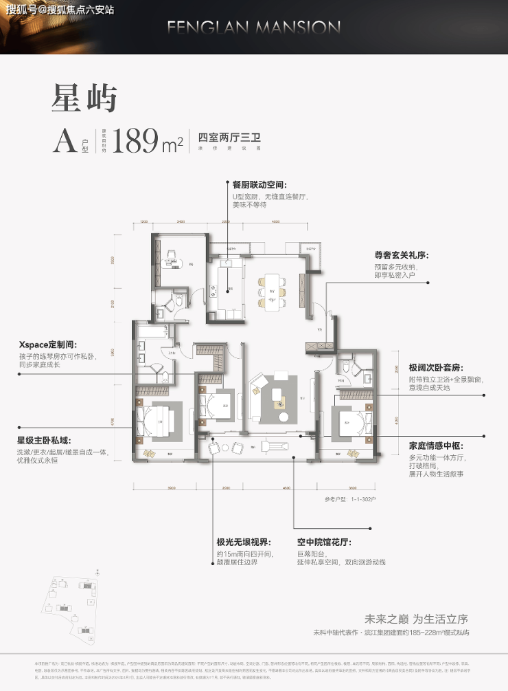 户型建筑面积为约185㎡、187㎡,223㎡、228㎡,纯改善。约185㎡做四房,这是豪宅的尺度。建面约228㎡户型,则是185㎡户型的进阶版。同样三房朝南,而且每个房间都升级成了带独卫的套房!最大程度上照顾家庭成员的独立性和私密感。空间感,已经快要赶上市面上的商业大平层了。