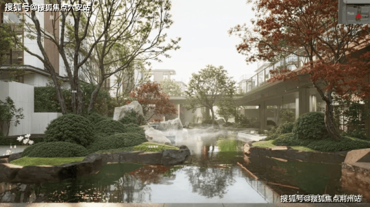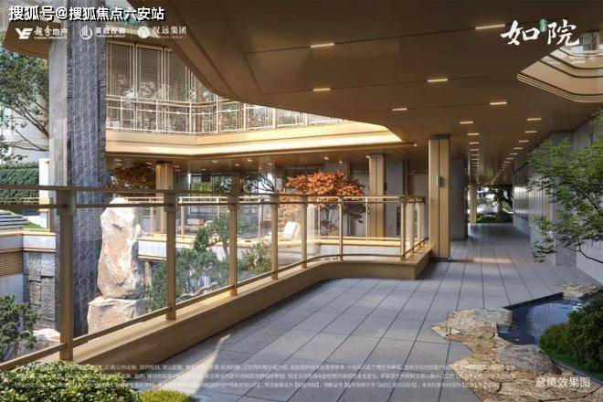 景观以「四境四巷」铺陈东方礼序,「五重归家」轴线串联宽约128米恢弘门庭、约15米叠石飞瀑、约13米榫卯转译的现代穹顶等。约1300㎡下沉式庭院采用三层立体观景设计,15米叠石飞瀑再现《溪山行旅图》的山水意境。
