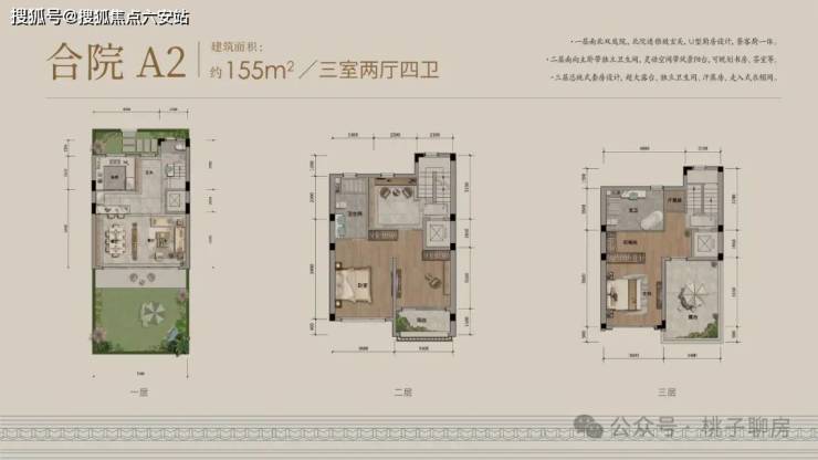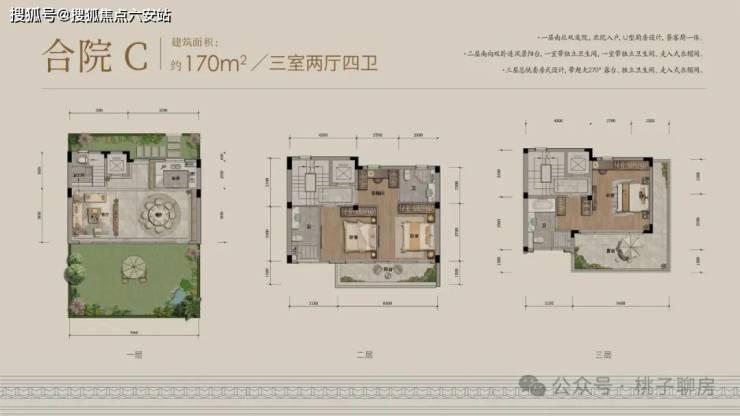 合院:地上三层+地下一层,层高3.6米,配备独立玄关、双套房主卧,赠送35-180㎡私家庭院。