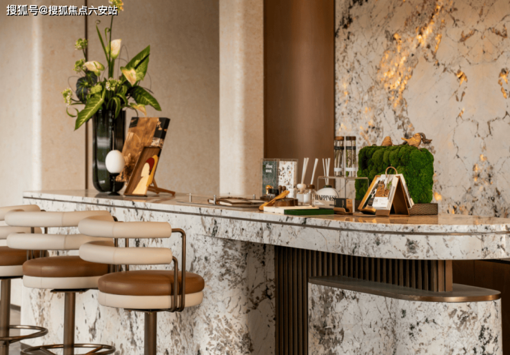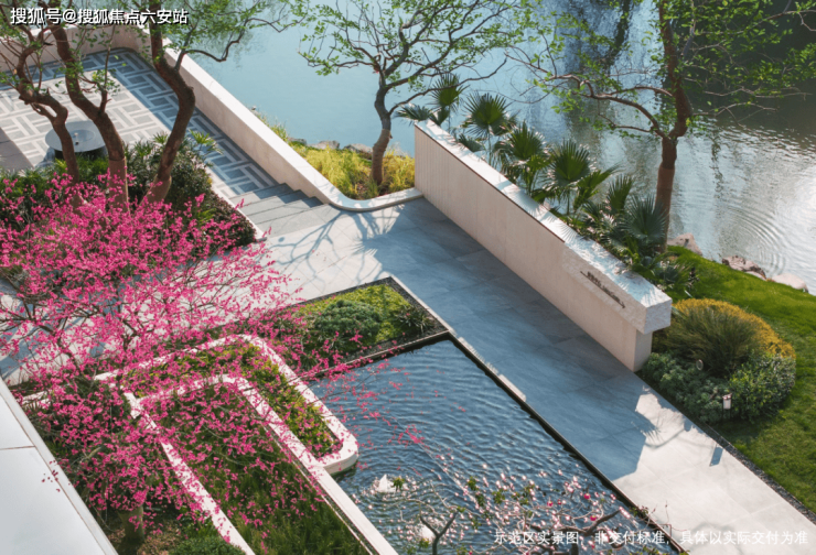 专属定制的精致奢石材料,迎宾水景,仪式感植物,传递惬意的轻松归家感。