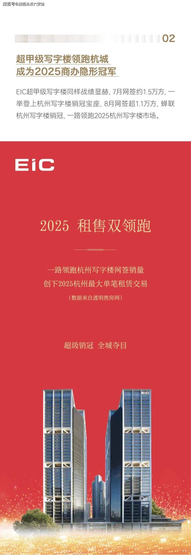 从大平层月月三冠王,到杭州写字楼领先EIC以硬核实力一路领跑商办市场100%完美交付,见证销量与口碑双丰收。