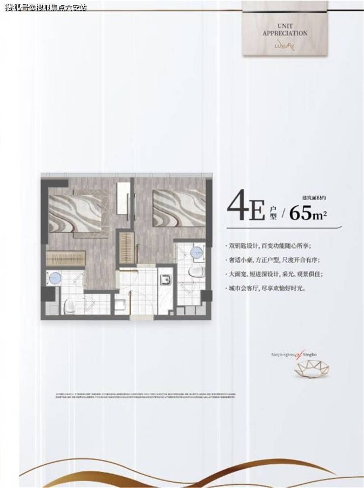 面积:65㎡(朝北)46㎡-75㎡(朝南)