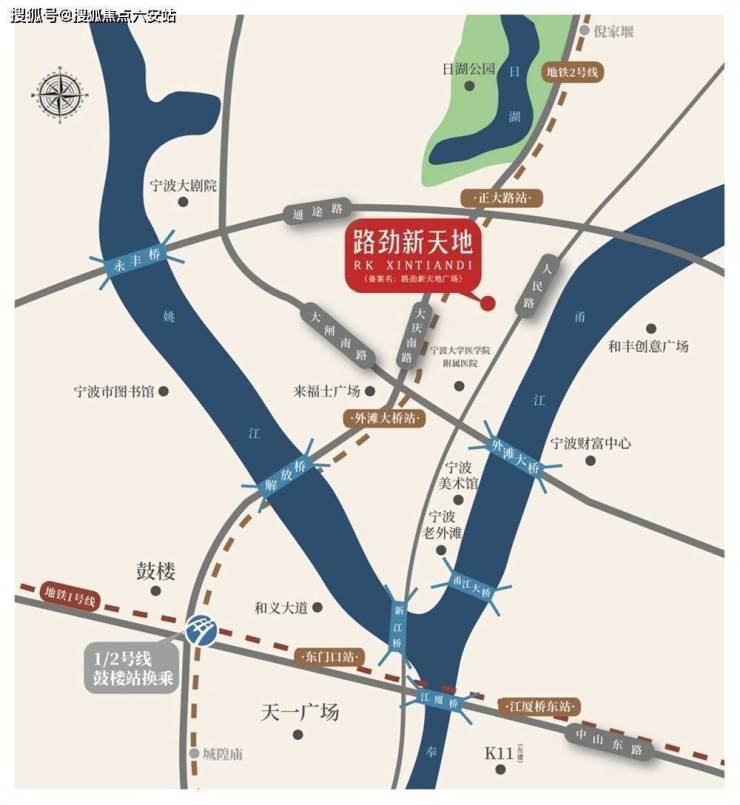 项目交通:交通方面已形成四横两纵一轨交的交通脉络,一轨交:2号线横贯城市东西,10分钟内与1号线无缝换乘,畅达宁波,2号线外滩大桥站步行5分钟即到本案,并且一线直达宁波站和机场非常便捷;四横两纵:环城北路、通途路、大闸南路(外滩大桥)、姚隘路(甬江大桥)勾连城市核心;人民路、大庆南路纵领南北,激活区域活力,自驾出行可以非常方便的到达城市各个区域。