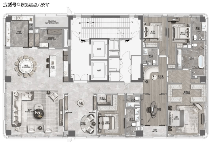 - 主卧套房配置双台盆卫浴+独立衣帽间,面积媲美别墅主卧