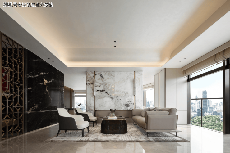 靠近社区第一眼,可以看到围墙上全是大面爱马仕灰奢石和大花绿奢石整板通铺,结合复杂的金属格栅线条过渡斥资一个亿的专属定制,涵盖云端会客厅、茶空间、美术馆、沙龙空间及私宴厅。以雅奢质感构建当代场所精神,唤醒人们对空间的艺术理解、情感共鸣和精神认同。开放以来,举办多场高端定制活动,跨越行业、文化的观点在此交流、互通。