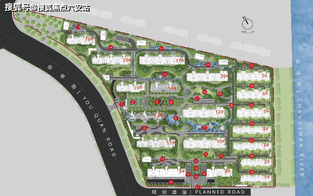 社区园林:1.7 万㎡山水森林景观,两轴一环七园七巷