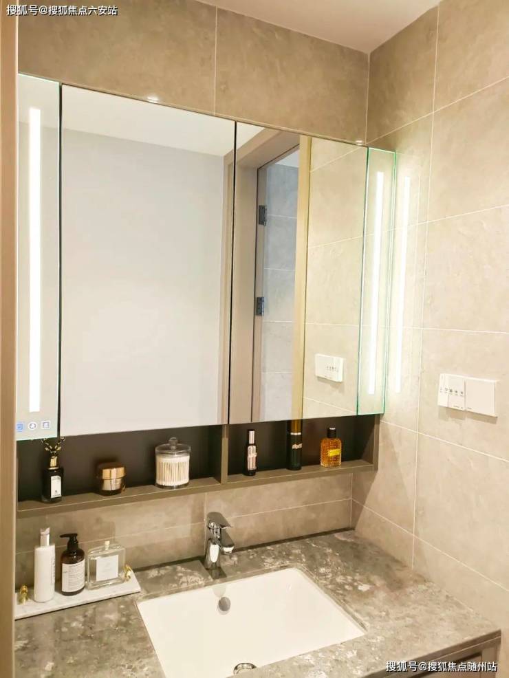 卫生间的镜柜都做好,男主人的剃须刀、女主人的美容仪等,都可以在这里收纳,美观的同时,兼顾实用性;