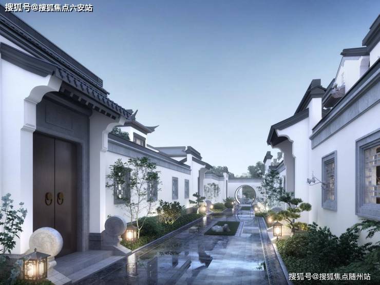 取法苏州园林,以巷道布局、入户门廊、中式景墙还原传统院落意境: