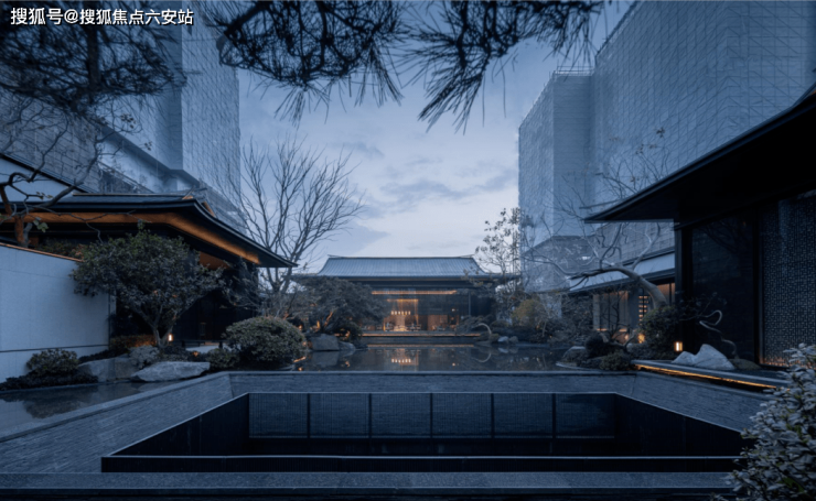 约930㎡礼仪园,表达“入园以礼相迎”之意,对称设计,罗汉松、卧石组成“两松定石”之境,将“石冠群山”、“砚国明珠”的歙砚造型居其中,给予业主生活无限的仪式感与尊贵感。