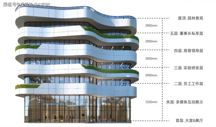 多层研发楼则采用“城市未来派”风格,建筑立面使用铝板和玻璃幕墙材质,融入形似海湾的曲线设计,彰显出建筑的高端质感。此外,园区还设计了立体绿篱、屋顶露台、约28米超宽天幕、园区运动文化空间、交流分享平台等五重空间,内部规划9米超大柱距空间、约7.2米挑高一层空间,将为入园企业打造多元化、多用途的办公空间。
