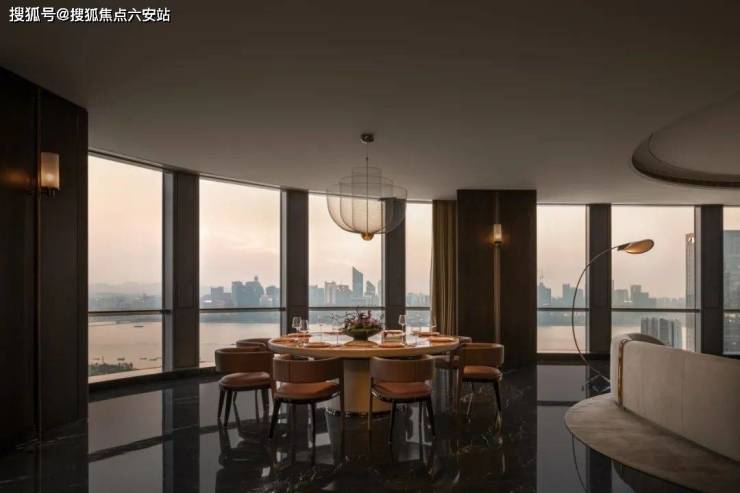 站在七星潮鸣的窗前,270°全景视野将杭州的过去与未来同时呈现。西湖的群山是背景,钱塘江的潮水是旋律,而奥体的建筑群则是跳动的音符。当落日熔金,江面与室内空间被染成一片鎏金,仿佛时间在此刻静止。