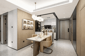 沐新月深谙年轻菁英对精致生活的追求,即使是约96㎡的尺度,亦以匠心打造媲美改善的空间体验。