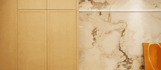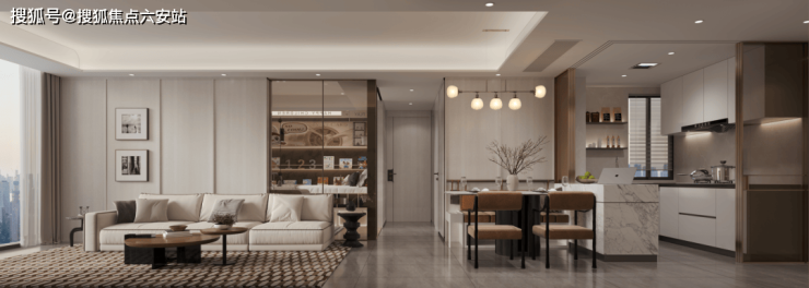 延续沐新月高定精装基因,约96㎡户型同样在细节处彰显品质。芬迪白岩板搭配高级木饰面,在以北欧丹麦简约色调为基底中,营造年轻、时尚、温馨的居家氛围。