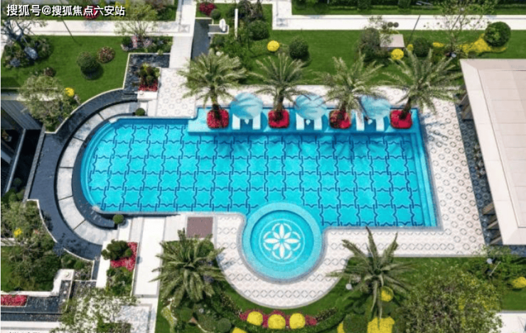 潮语臻境府的泳池还叠加了多项以奢华酒店为标准的功能升级,定制的多色砖环泳池周边铺设,海派客厅充满了度假风。