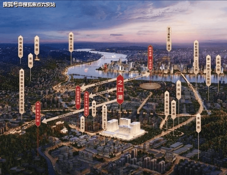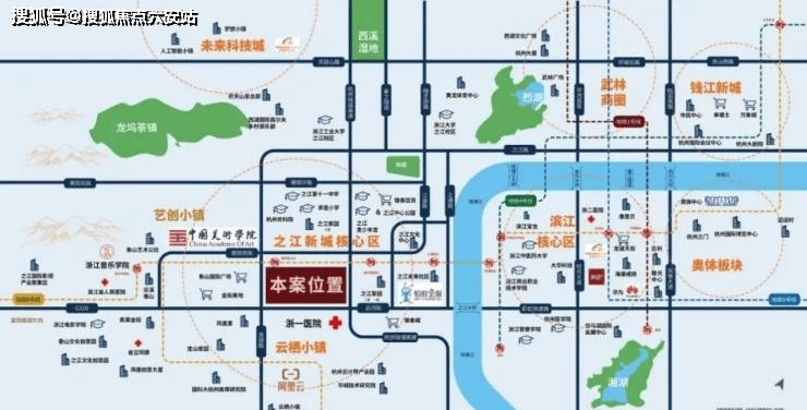 项目坐落于杭州市西湖区之江新城核心板块,毗邻富阳银湖开发区,紧邻杭州绕城高速西线转塘枢纽.地块北侧与中国美术学院、浙江音乐学院等高等艺术学府接壤,所处区域为政府重点规划的国家级文旅发展示范区,兼具钱塘江景观资源与西湖风景名胜区双重生态优势.