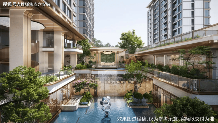 容积率仅1.1(A/B地块),规划4层排屋、6层叠墅及8-18层洋房/小高层,形成“别墅+洋房+高层”复合社区。建筑采用禅境中式风格,复刻西湖郭庄造园手法,下沉式庭院、游廊水榭与百年古树(如300年日本茶梅)营造诗意栖居。