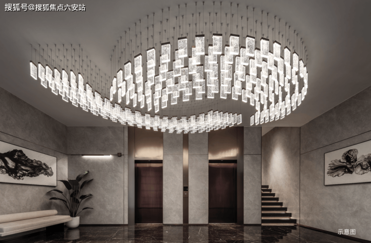 大堂两侧为机动车地下车库出入口,交付时图示景观、绿化及周边现有功能均可能根据实际需求进行改动,具体以交付时实景为准。本生活美学馆内所设公共入户电梯厅仅做销售展示使用,于交付时可能根据实际需求进行改动,具体以买卖双方签订的《商品房买卖合同》约定及实际交付为准。