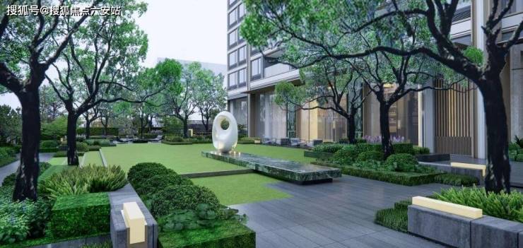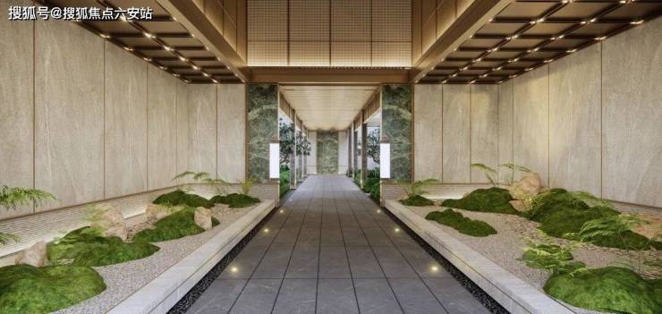 隐奢园林:汲取璞丽酒店营造灵感,定制长廊式门庭、“枯山水”景观点缀,中央雕塑+阳光草坪+林下空间,打造“双眼有绿意、心中有森林”的归家气韵;